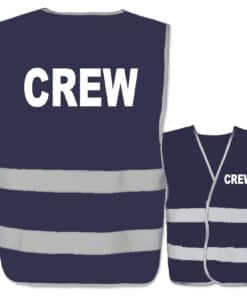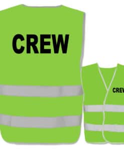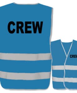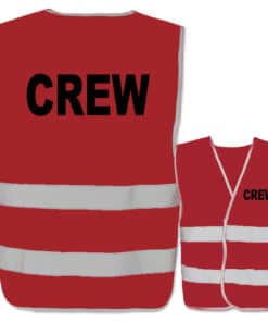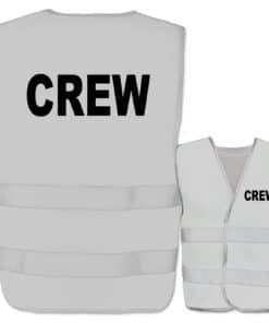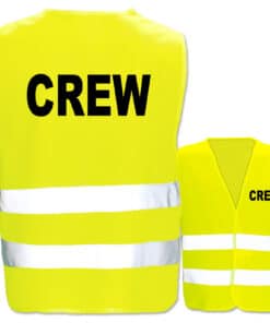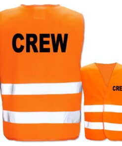 Angeboten werden hochwertige Warnwesten mit Aufdruck Crew in vielen Farben und Größen. Bedruckt sind die Westen mit dem Begriff Crew – es können aber über den Konfigurator auch abweichende Begriffe gewählt werden, ebenso wie bspw. ein Firmenname addiert werden kann.