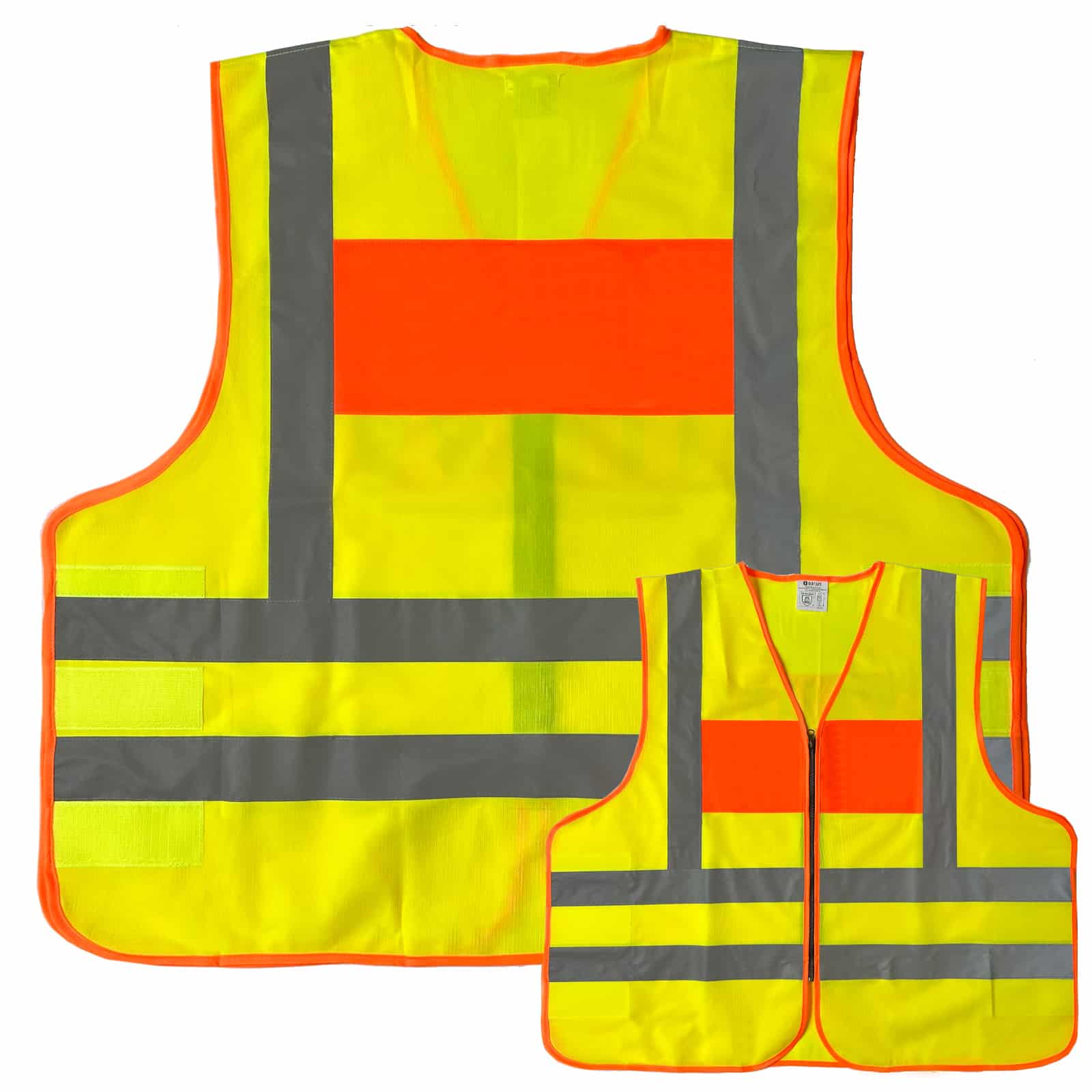 Dönges-Signalweste gelb/orange und gelb/blau nach BMI-Vorgabe mit 4 Leuchtstreifen // OHNE DRUCK – Bild 2