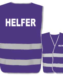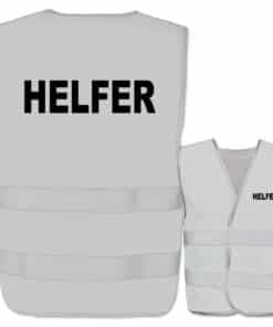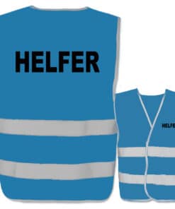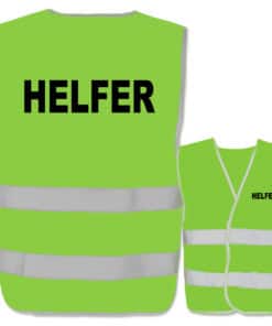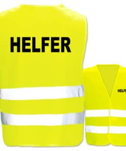 Angeboten werden hochwertige Warnwesten mit Aufdruck Helfer in vielen Farben und Größen. Bedruckt sind die Westen mit dem Begriff Helfer – es können aber über den Konfigurator auch abweichende Begriffe gewählt werden, ebenso wie bspw. ein Firmenname addiert werden kann.