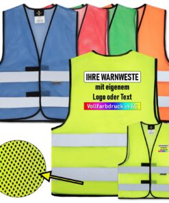 Warnwesten mit zwei Leuchtstreifen & Klettverschluss // viele Farben und Größen // auf Wunsch bedruckt