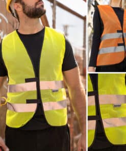 Mesh Warnwesten mit zwei Leuchtstreifen und Klettverschluss sowie eine große Auswahl an Farben und Größen. Ideal für den Sommer oder für Einsatzorte mit hoher Temperatur.