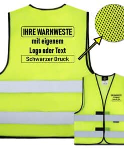 ACHTUNG – Durch den feinmaschigen Stoff (Gitter) ist die Mesh Warnweste für detaillierte Motive oder kleiner Texte eher ungeeignet.