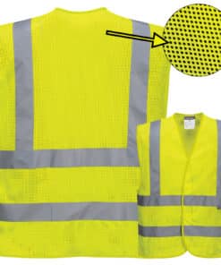 Die Portwest C370 MeshAir Warnweste aus gelochtem Mesh-Material mit vier Streifen inkl. einem Schulterreflexband sind die ideale Lösung für alle, die gut sichtbar bleiben müssen
