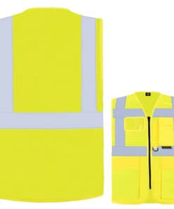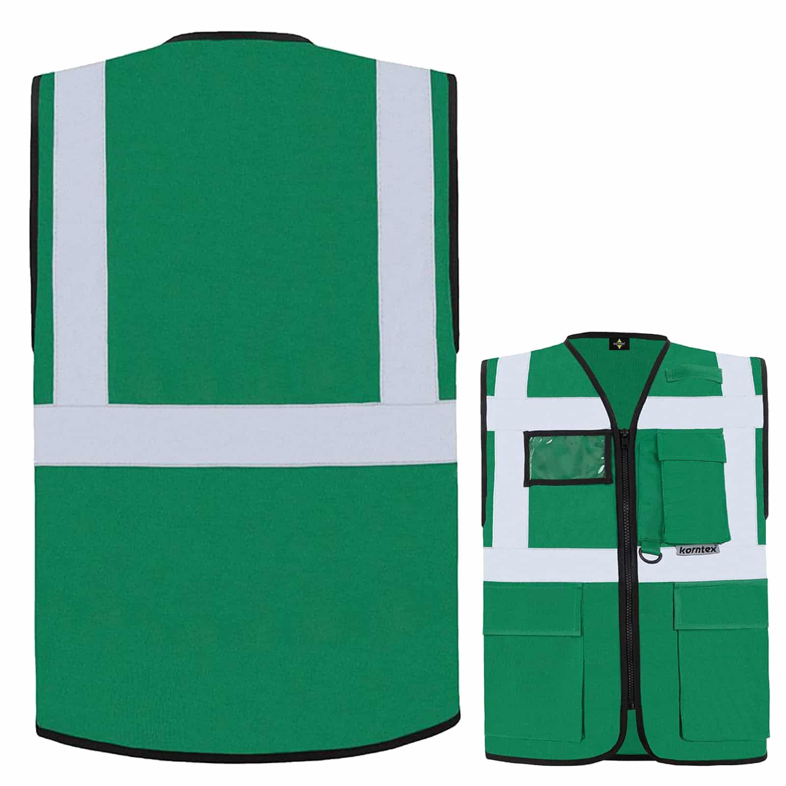 Anders als unsere regulären Warnwesten sind die angebotenen Multiwesten mit drei Leuchtstreifen ausgestattet, verfügen über einen leichtgängigen Reißverschluss, bieten eine Öse zum Anhängen von Ausrüstungsgegenständen und viel Stauraum für das Equipment ebenso wie einen Ausweis-Einschub.