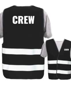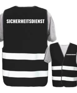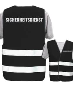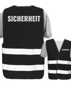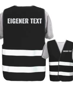 - Druck: Hochwertiger Flexdruck, je nach Wahl in Schwarz/Weiß (je nach Westenfarbe) oder reflektierendem Grau